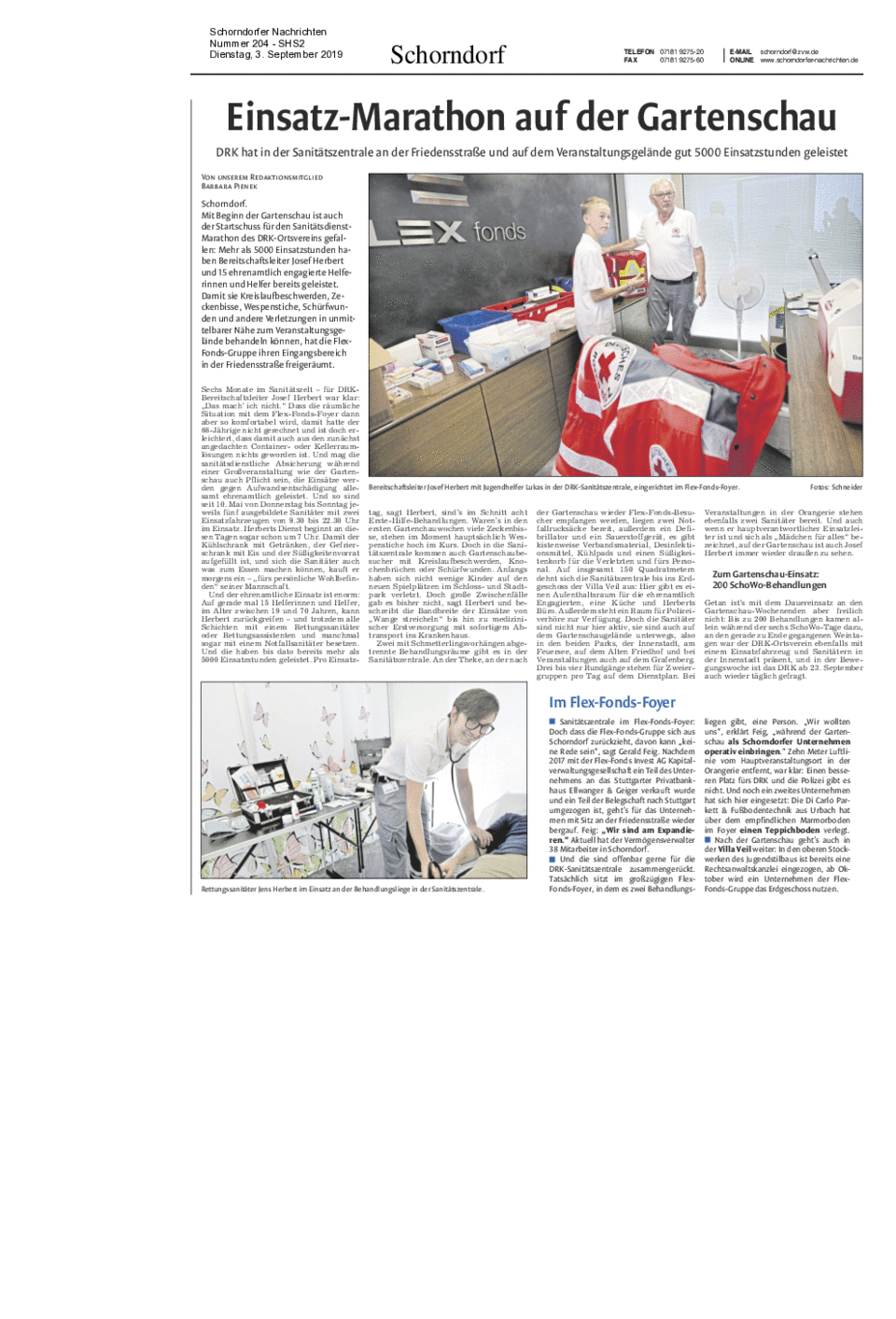 - Sanitätszentrale im Flex-Fonds-Foyer: Doch dass die Flex-Fonds-Gruppe sich aus Schorndorf zurückzieht, davon kann "keine Rede sein", sagt Gerald Feig. Nachdem 2017 mit der Flex-Fonds Invest AG Kapitalverwaltungsgesellschaft ein Teil des Unternehmens an das Stuttgarter Privatbankhaus Ellwanger & Geiger verkauft wurde und ein Teil der Belegschaft nach Stuttgart umgezogen ist, geht's für das Unternehmen mit Sitz an der Friedensstraße wieder bergauf. Feig: "Wir sind am Expandieren." Aktuell hat der Vermögensverwalter 38 Mitarbeiter in Schorndorf.
