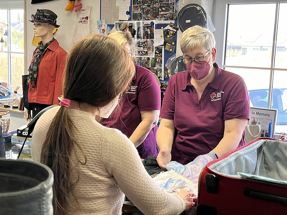 Die meisten Familien seien aus Mariupol geflohen, sagt Viktor Rein. Die Hafenstadt ist besonders schwer von Kämpfen betroffenen. Im letzten Moment habe eine Familie die Stadt noch verlassen können. Acht Personen seien in einem kleinen Auto direkt nach Deutschland gefahren. Eine Familie habe lediglich ihre Pässe dabeigehabt. Diesen Menschen zu helfen, ist dem DRK-Ortsverein ein besonderes Anliegen. „Ein Ehepaar hatte 30 Minuten Zeit, um die Stadt zu verlassen“, berichten die DRK-Helferinnen. Aus den Beständen der Kleiderstube können sich die Geflüchteten bedienen. Manche Familien sind sehr zurückhaltend und unendlich dankbar. Ihnen müssten sie die Kleidungsstücke fast schon aufdrängen, sagt Anke Sibler. Manche bedienen sich großzügig aus den Beständen des DRK und die Helferinnen haben alle Hände voll zu tun, das passende Angebot vorzuhalten, denn die Familien stehen bald Schlange. Die Ehrenamtlichen tragen ein, wie viele Artikel sie ausgeben. So haben sie einen Überblick, was bald fehlen könnte.